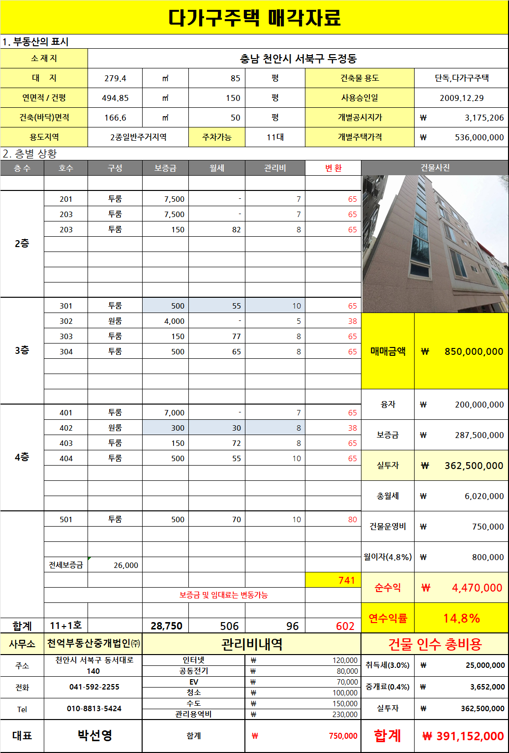 내역은 다가구주택의 특성상 변동될 수있다는점